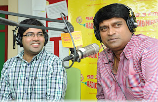 ~ Director Ravi Babu goes live with RJ Hemanth during the audio launch at Mirchi studio ~