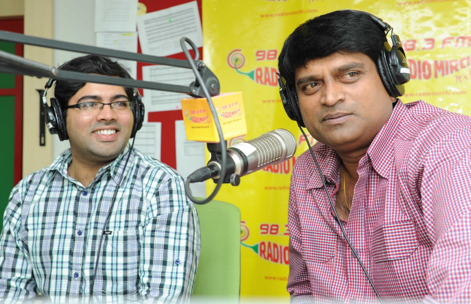 ~ Director Ravi Babu goes live with RJ Hemanth during the audio launch at Mirchi studio ~