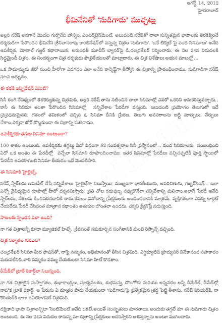 సుడిగాడు సినిమా కోసం మేమంతా చాలా ఆతురత గా ఎదురు చూస్తున్నాం. ఎందుకంటే యాక్షన్ సినిమా షూటింగ్ లో కొన్ని సీన్స్ చెప్పేవాడు. అవన్నీ కూడా చాలా ఇంట్రెస్ట్ గా అనిపించేవి. నరేష్ ఈ సినిమా పెద్ద హిట్ అవుతుందనడంలో ఎలాంటి డౌట్ లేదు అని అన్నారు.