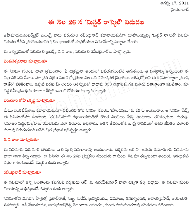 anaganaga oka raju